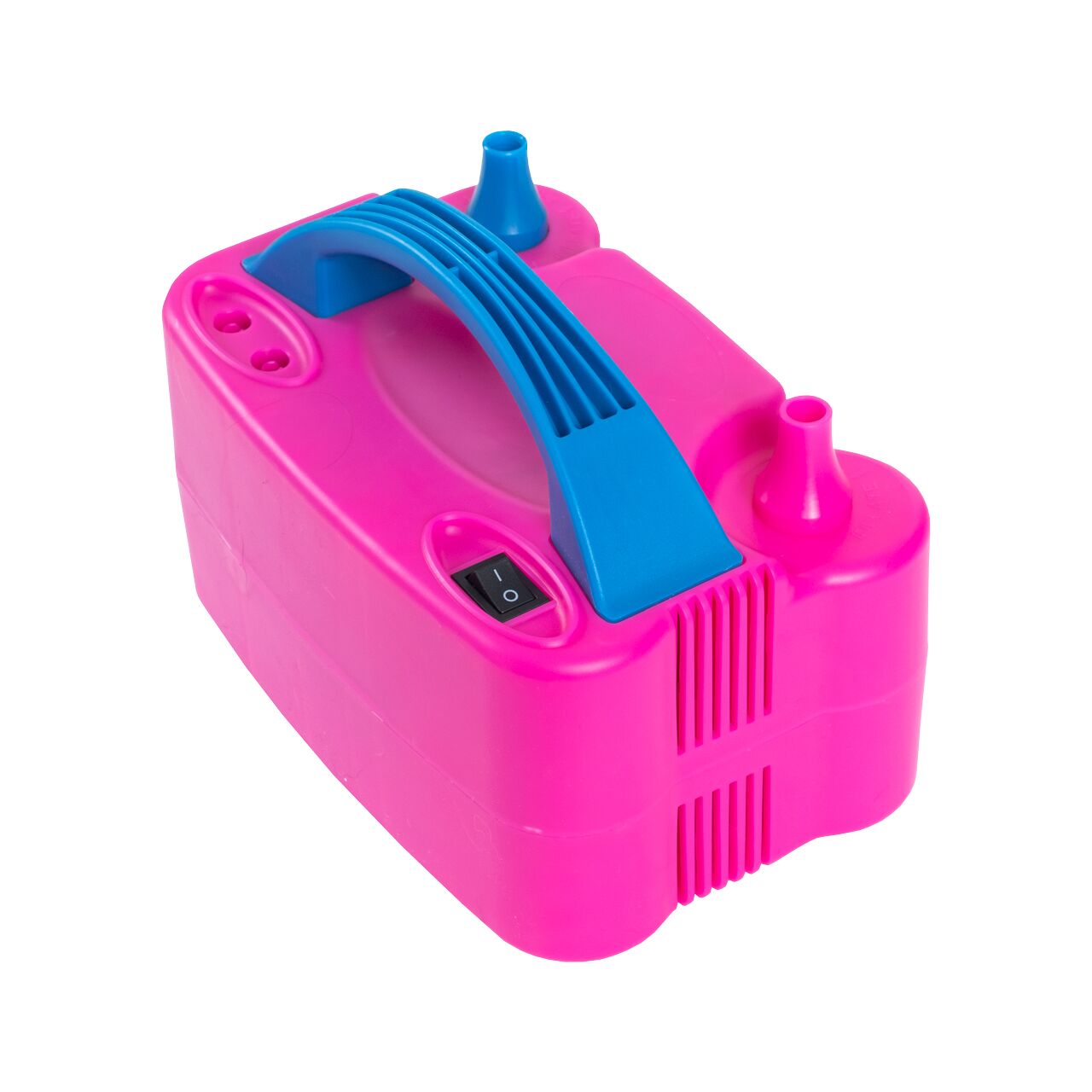 Bomba globos electrica. Color rosa con azul. Medidas. 21x 15 cm Contenido 1 pza