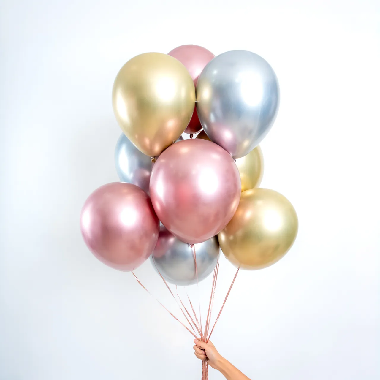 👑 Globo Metálico de Látex en colores plata, oro y oro rosado. ¡Haz que tu evento brille como nunca con estos globos reales! (Contenido: 25 pzas)